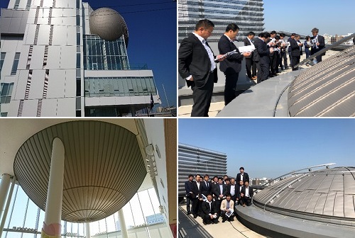 北三友会 千葉会長より、事前に三晃金属工業㈱本社に依頼していただき完成後は、行くことの出来ない屋上にて見学を実施させてもらった。