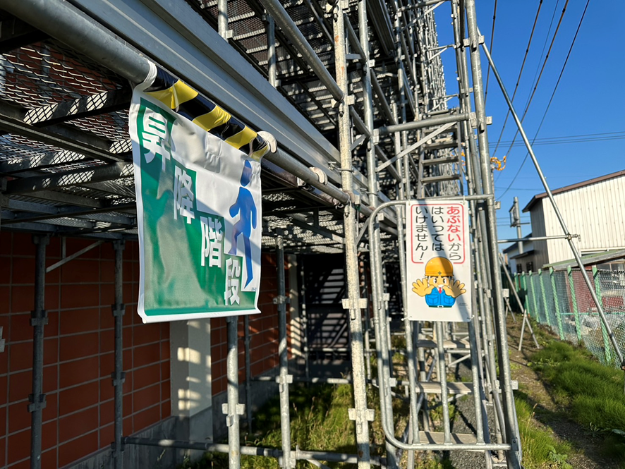 近隣は住宅街のため飛散防止対策を徹底する事、電線は被覆しているが表示も行った方が良い事、足場は幅も広く安定感もある事等の意見を出し合いました。