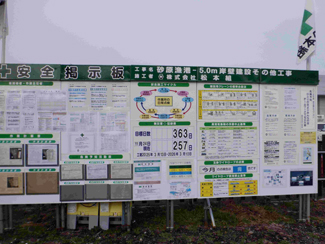 これから強風雪の天候にかわりつつあります。特に海岸での工事ですので飛散防止等